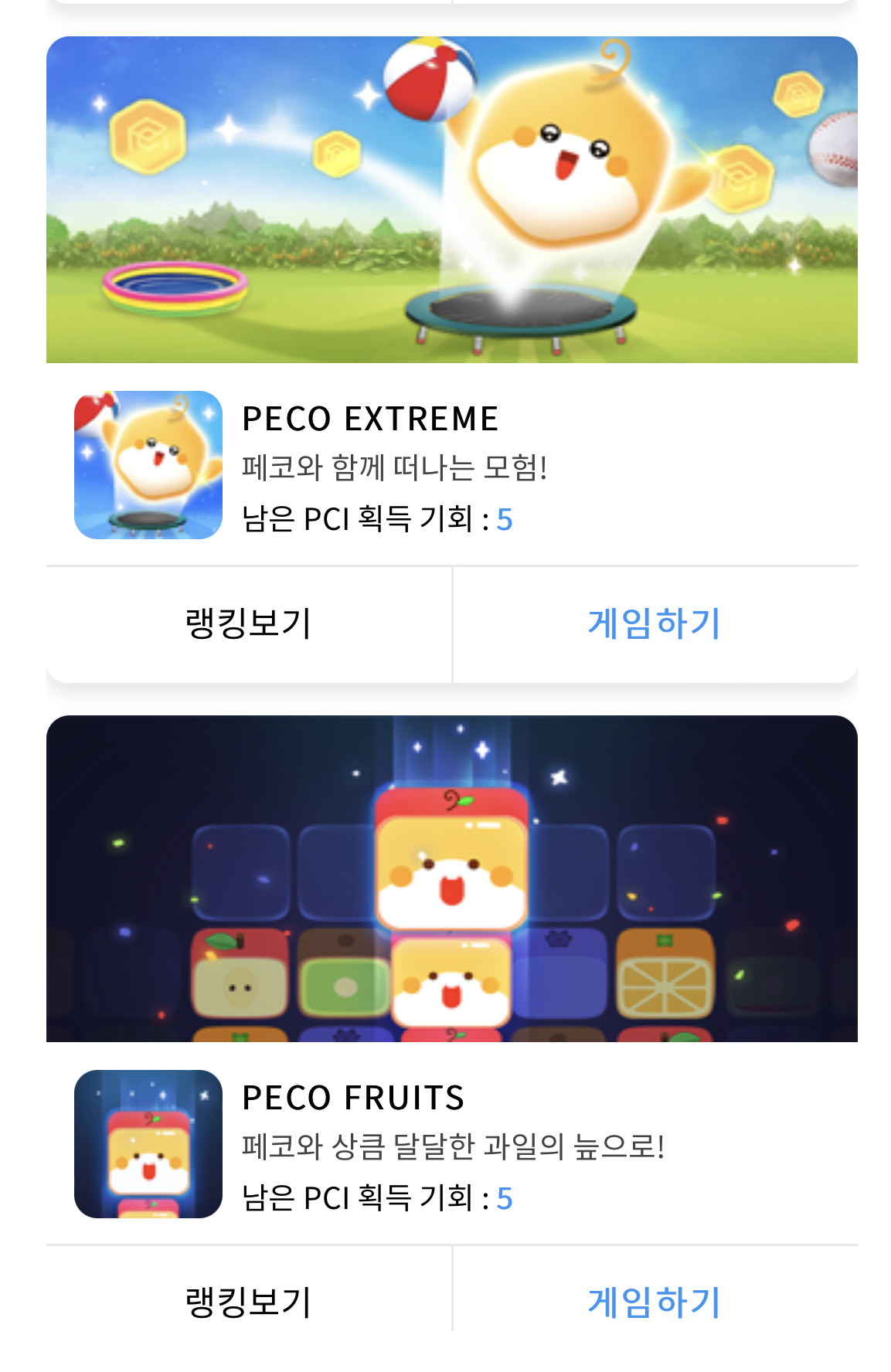 그리고 다양한 게임들이 있어서 게임을 통해 페이코인을 줍니다. 앱 안에서 구동되는 간단한 게임들인데 이게 의외로 중독성이 있어요. 하지만 제한된 시도횟수가 있어 무제한 많이 할 수 없으니 중독될 염려는 하지 않아도 됩니다. 게임도 하고 소소하게 페이코인도 얻을 수 있으니 한번 해보세요.