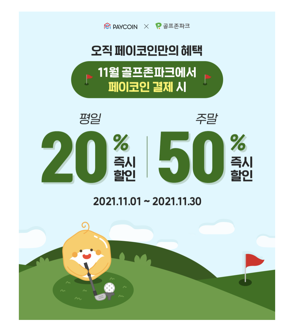 페이코인은 다양한 혜택이 있습니다. 스크린 골프 골프존에서는 평일 20% 할인과 주말 50% 할인도 됩니다. 정말 큰 혜택입니다. 이것때문에 페이코인을 일정금액 충전해두고 골프존 가는 사람도 많은 것 같습니다.