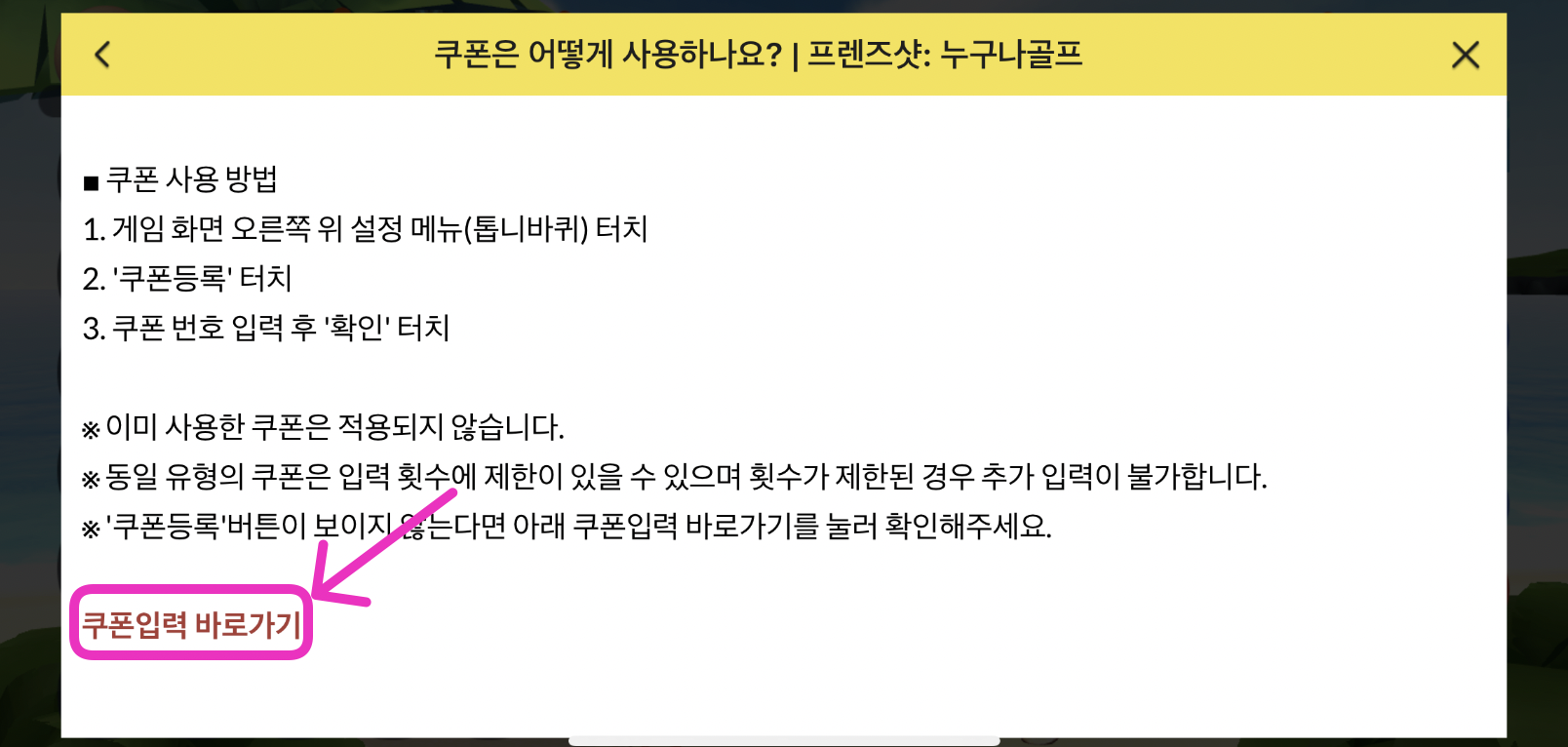 쿠폰 입력 바로가기를 클릭한다