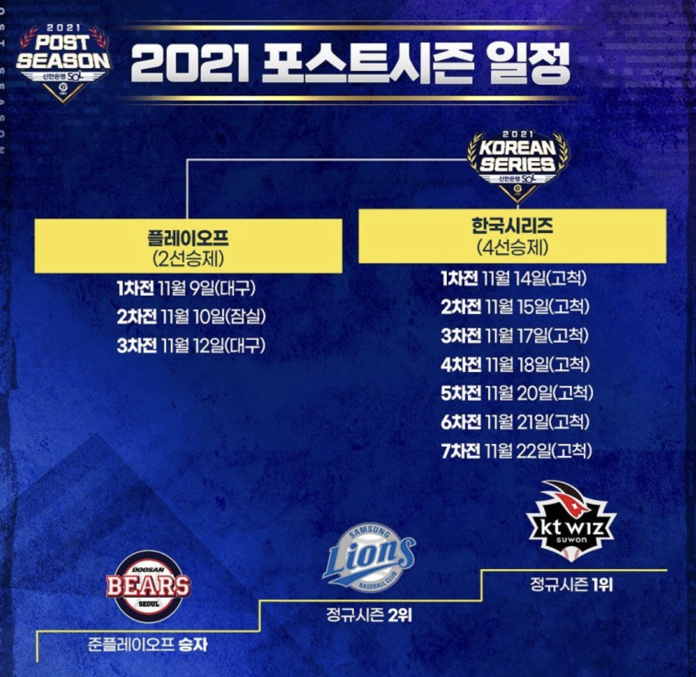 정규시즌 4위로 마친 두산은 와일드카드를 통해 키움을 이기고 엘지와의 경기에서 이기면서 준플레이오프 승자가 되었습니다. 그리고 삼성과의 경기는 3번째 경기까지 갈 필요가 없었습니다.