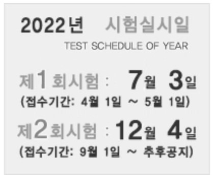 2022년 시험실시는 2회 실시된다. 아마 이게 오래전에는 일 년에 한 번만 시험 봤다고 하더라.