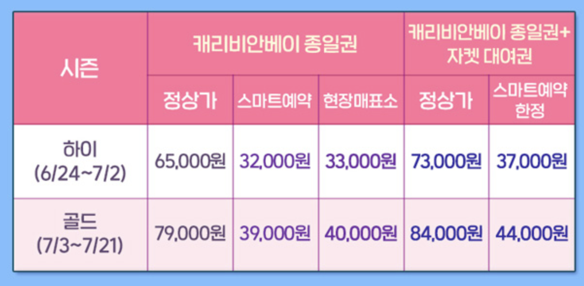 2023 최신 캐리비안베이 할인 정보, 마일리지 이용법, 자켓 대여 할인