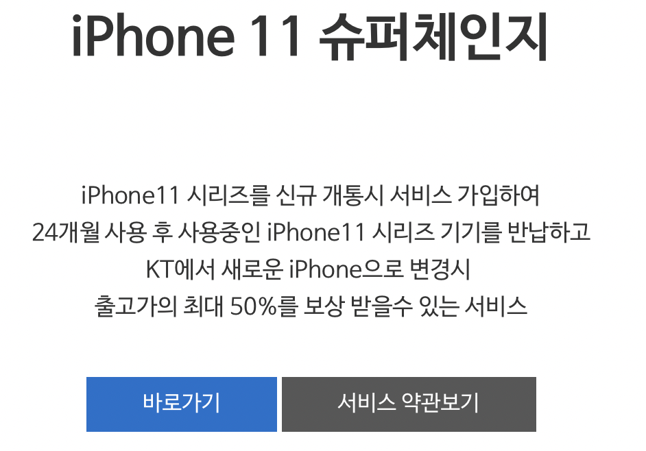 기존 슈퍼체인지로 아이폰11을 구매한 사람이 선택할 수 있는 옵션