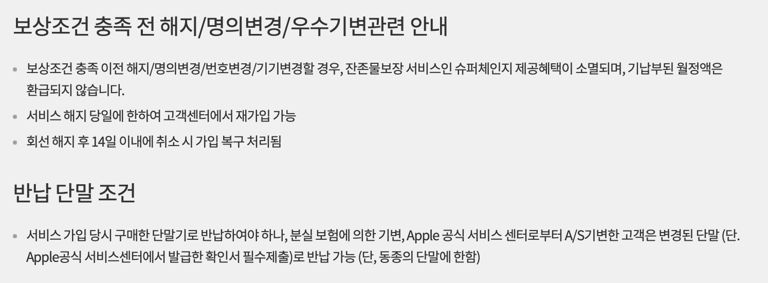 일단 아이폰 최신기종을 2년마다 교체하겠다는 사람과, 나는 아이폰을 잘 보관하여 분실/파손의 위험이 적다고 생각하는 사용자라면 계속 슈퍼체인지라는 요금제를 통해 가입하는 것도 좋을 것 같습니다.