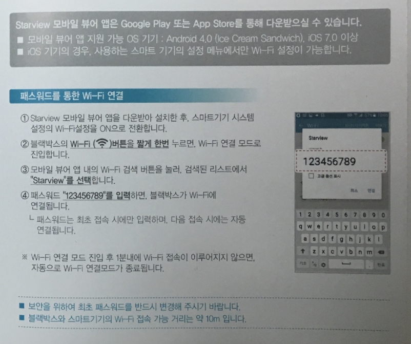 스타뷰 블랙박스 wifi 연결하는 방법