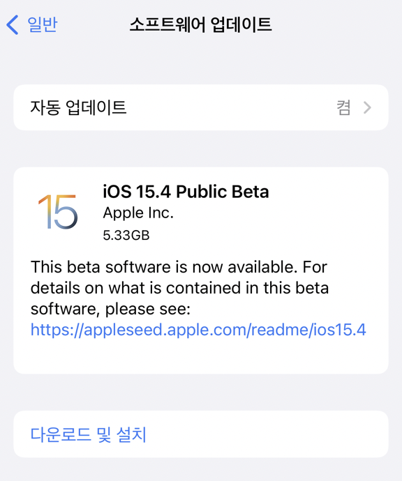 이제 일반적인 업데이트와 같이 <설정 - 일반 - 소프트웨어 업데이트>에서 업데이트 확인을 하면 이제 누구보다도 먼저 업데이트를 적용할 수 있습니다.