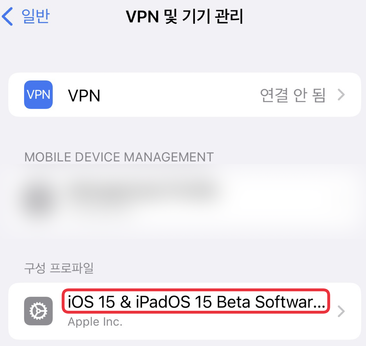 설정-일반-VPN 및 기기 관리