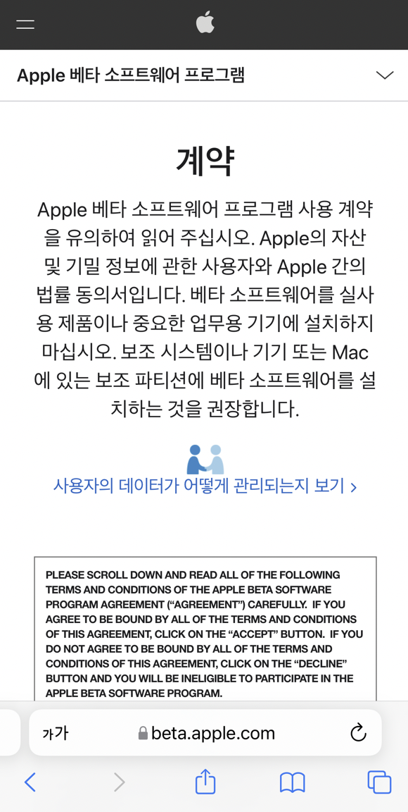 애플 홈페이지 betaprofiles.com에서 등록이 가능합니다.