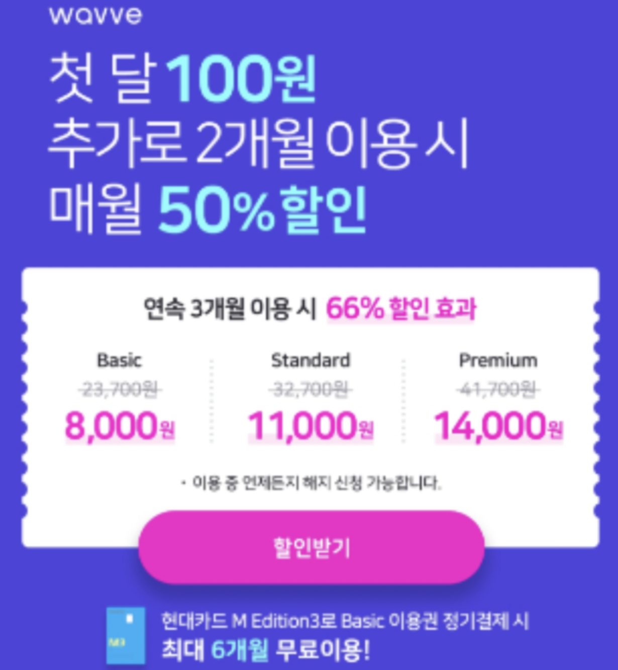 먼저 아래와 같이 웨이브 가입을 12000원에 했습니다. 프로모션이 적용되어 실제 결제는 3개월간 5,000원이었고, 실제 5,000원이 결제 되었습니다.