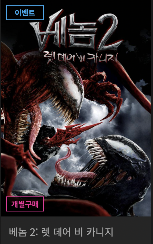 그리고 베놈 2를 보려는 순간 개별 구매하라는 메시지가 딱~! 나오더군요.