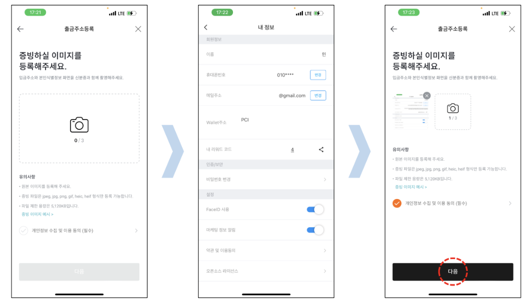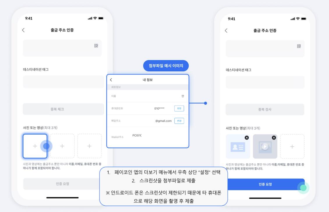 페이코인 앱을 열고 내 정보 페이지를 캡쳐하여 제출하면 됩니다.