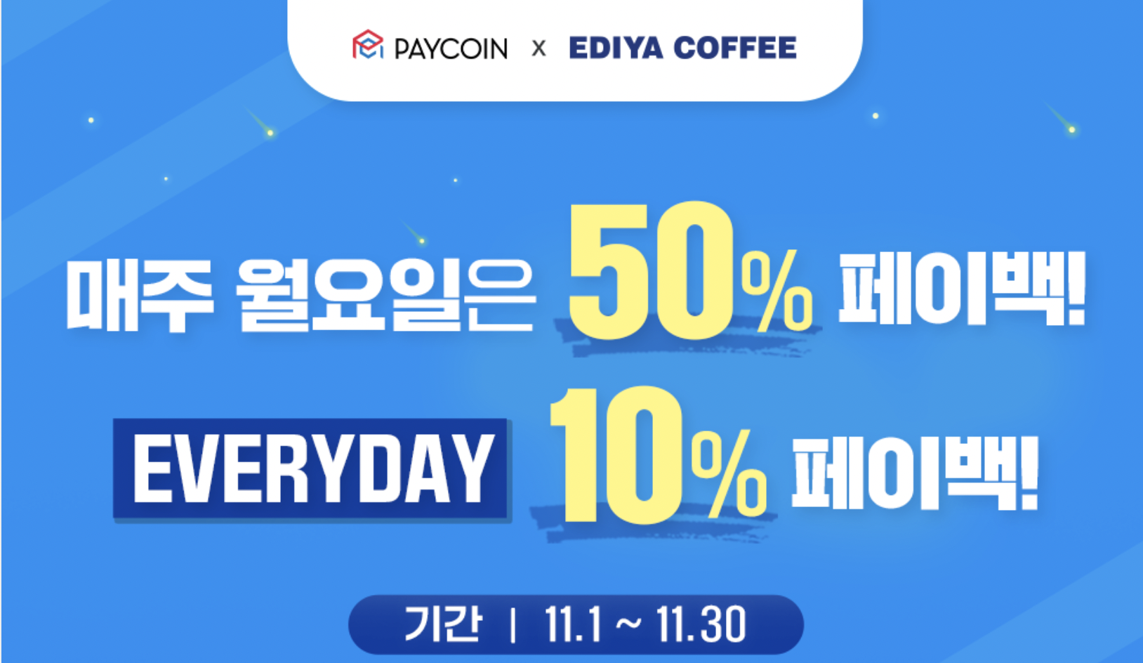 이디야 역시 매주 월요일 50% 페이백, 나머지 10% 페이백을 진행합니다.