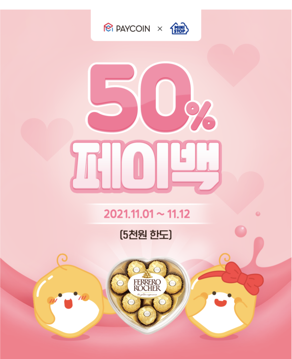 페이코인으로 빼빼로데이 페레로로쉐 8T 제품을 50% 할인 받아 살 수 있습니다.